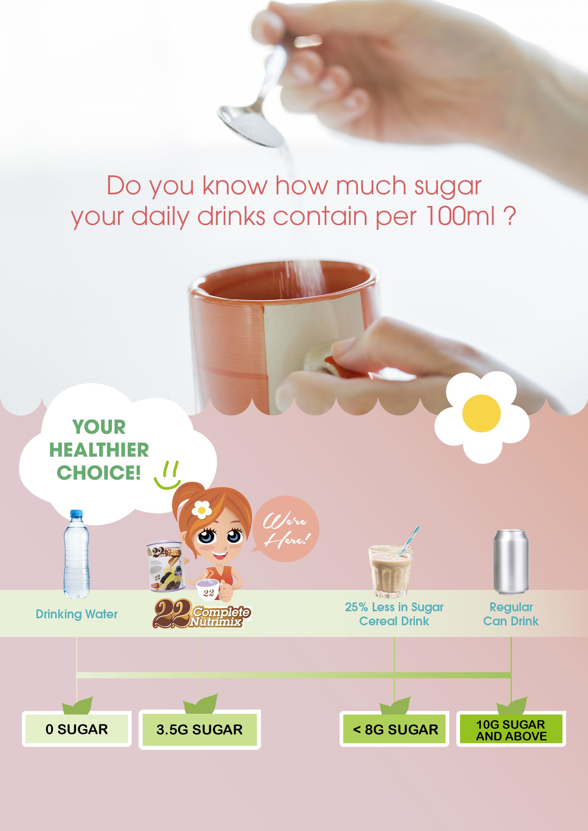 - Bột ngũ cốc dinh dưỡng Good Lady 22 Complete Nutrimix chỉ sử dụng fructose như chất làm ngọt và thêm vào việt quất. Lượng đường thấp hơn 25% so với ngũ cốc hỗn hợp thông thường khác.