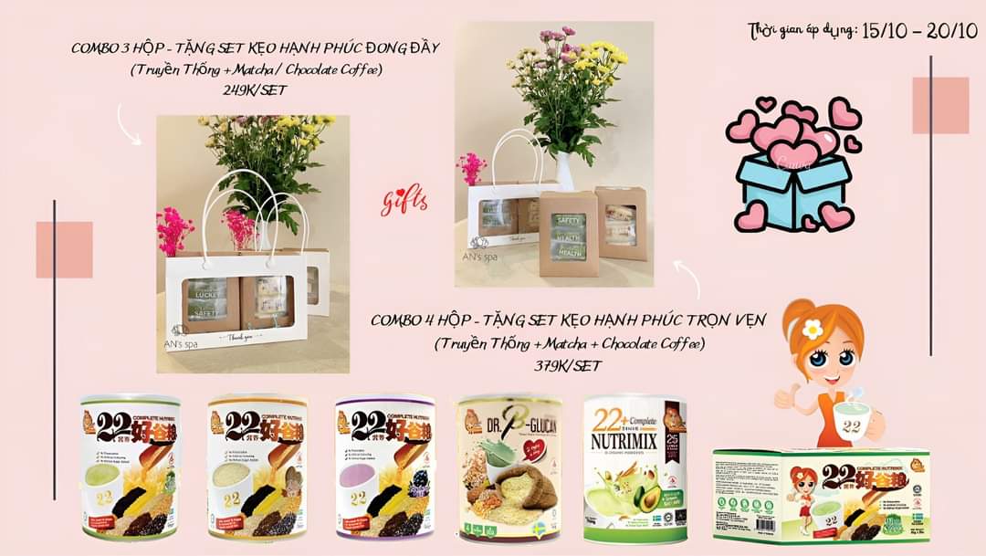 Món quà sức khỏe từ Ngũ cốc dinh dưỡng 22Nutrimix đến từ Singapore dành tặng cho những người phụ nữ yêu thương luôn Năng động, tươi trẻ mạnh khỏe và thành đạt, hạnh phúc.