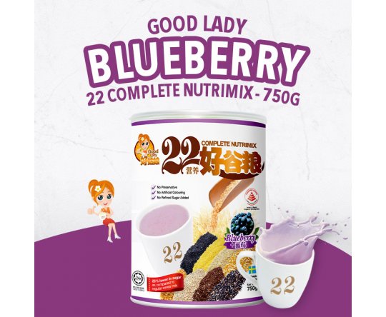 Bột ngũ cốc dinh dưỡng Good Lady 22 Complete Nutrimix chỉ sử dụng fructose như chất làm ngọt và thêm vào việt quất. Lượng đường thấp hơn 25% so với ngũ cốc hỗn hợp thông thường khác.