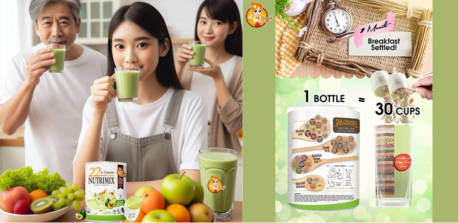 Ngũ cốc dinh dưỡng 22 Nutrimix là bột ngũ cốc được sản xuất với sự kết hợp khoa học về dinh dưỡng của 22 loại ngũ cốc, hạt, đậu và 4 thành phần sang chảnh Mầm Lúa Mì, Bột Yến Mạch, Vỏ Mã Đề và Soy Lecithin, đặc biệt Mầm Lúa Mì được trồng hữu cơ tại Singapore. Hơn thế nữa Chất diệp lục (chlorophyll) chứa hàm lượng canxi cao từ chlorophyll, vitamin, khoáng chất, axit amin và Enzyme tuyệt đỉnh nhất. Từng khâu sản xuất được khép kín với quy trình nghiêm ngặt, đảm bảo vệ sinh an toàn thực phẩm.