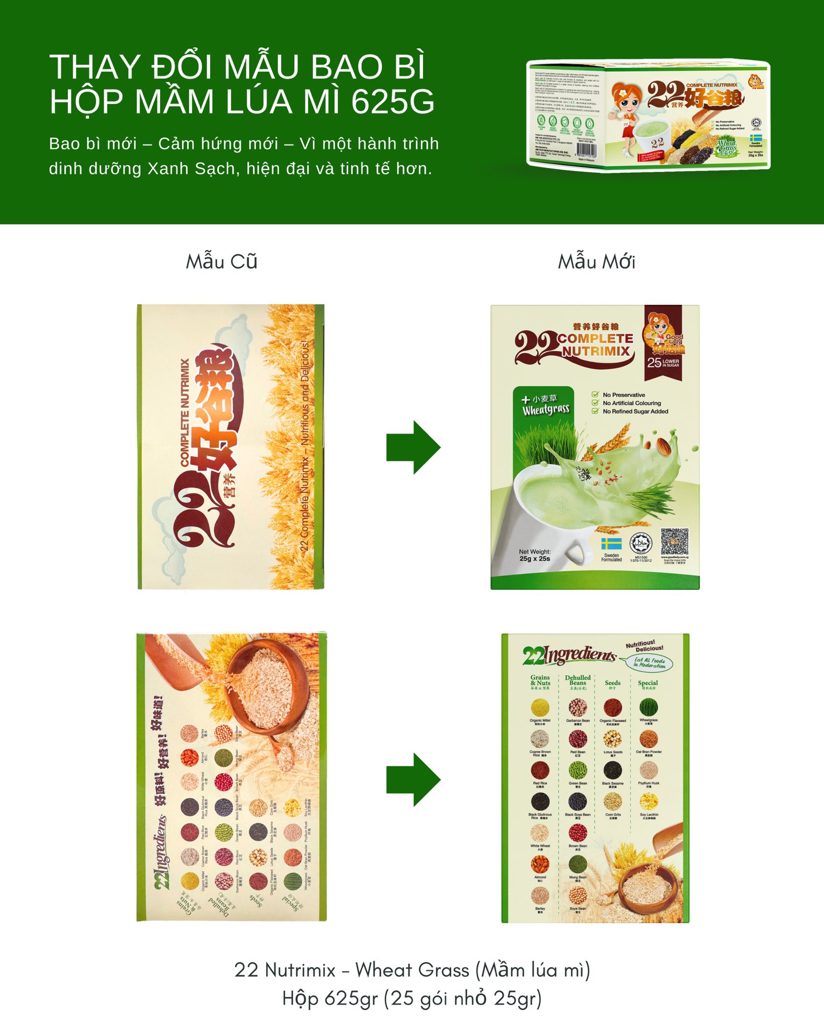 📢 THÔNG BÁO CHÍNH THỨC TỪ NGŨ CỐC 22 NUTRIMIX - SINGAPORE THAY ĐỔI MẪU BAO BÌ HỘP MẦM LÚA MÌ 625G